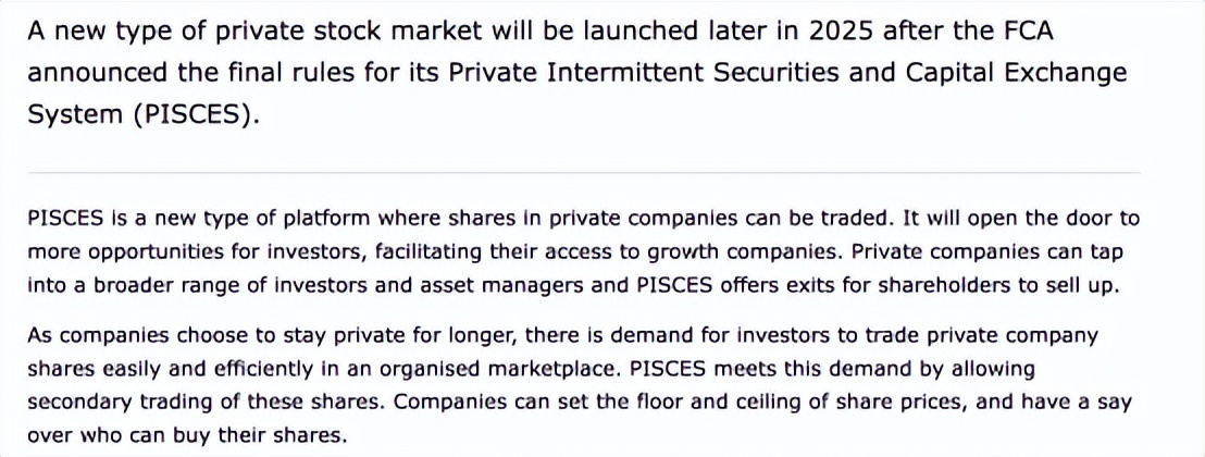 【环球网财经综合报道】当地时间6月10日,英国金融行为监管局(FCA)发布消息,将于今年下半年推出面向非上市私营企业的股权交易市场"间歇性私有证券与资本交易系统"(PISCES)。或可在为未达到上市标准或选择保持私有状态的企业提供股权交易机会股票期货配资公司,同时帮助早期投资者实现退出。
